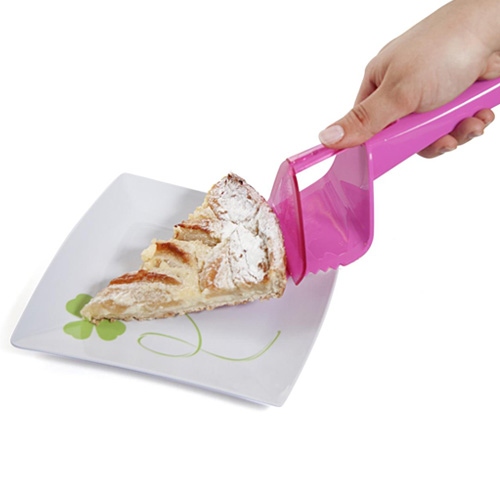 Ensuite grâce à son "système de poussée" intégrée, il vous suffit de glisser la part de la tarte dans votre assiette!